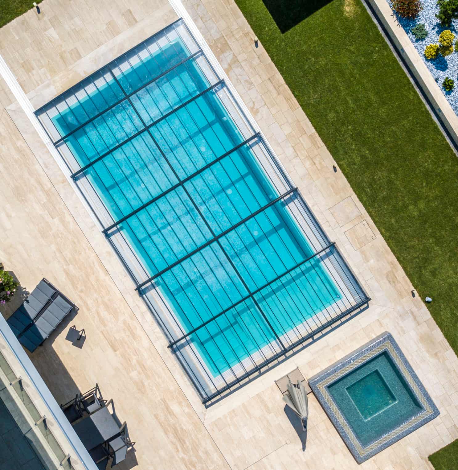Die Poolabdeckung bringt zahlreiche Vorteile mit sich. Sie schützt das Wasser vor der Abkühlung infolge schlechten Wetters und verringert somit die Kosten für die Beheizung des Beckens. Zugleich hilft sie, das Wasser sauber zu halten und den Verbrauch an Poolchemie zu reduzieren. Mit der Abdeckung des Beckens erleichtern Sie sich wesentlich seine langfristige Wartung. Der größte Vorteil der Poolüberdachung ist die Sicherheit. Mit einem fest abgedeckten Becken müssen Sie sich nicht mehr um Ihre spielenden Kinder oder um neugierige Haustiere fürchten. Wir bieten vielfältige Möglichkeiten der Überdachung und Sicherung Ihres Pools an.