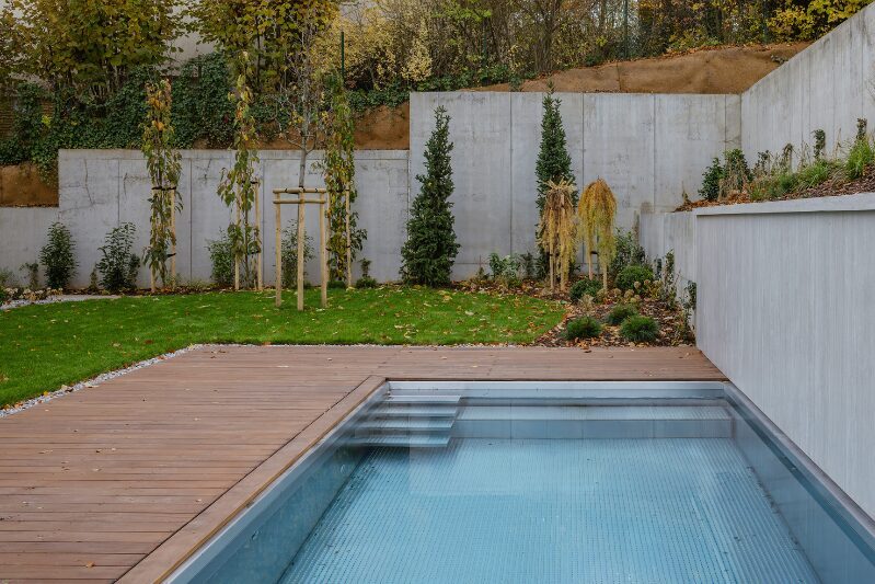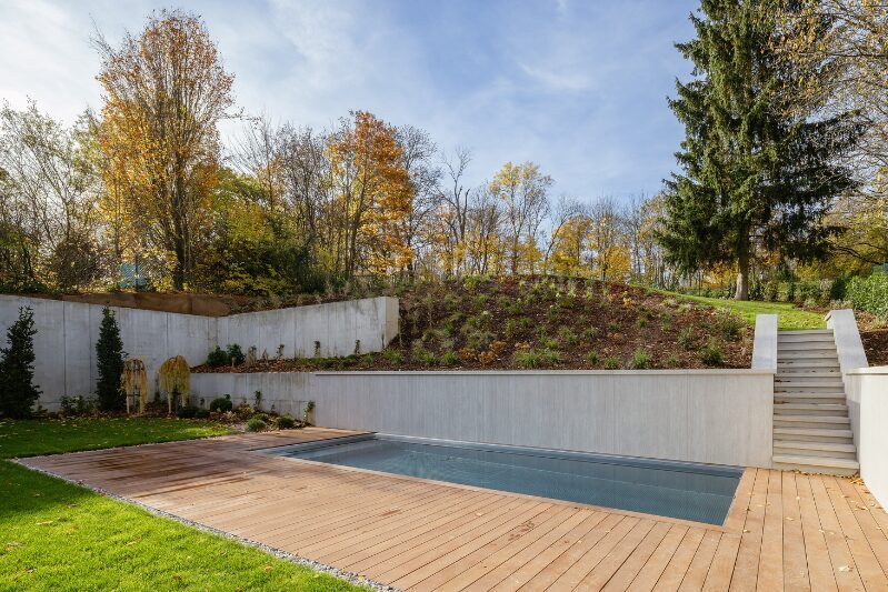 „Zasazení bazénu bylo součástí návrhu celé kompozice zahrady, kdy jsme ho umístili tak, aby byl zakomponován hezky do svahu a k opěrným stěnám a doplnil tak tuto přírodní kompozici a zenovou část zahrady.“ popisuje umístění bazénu Dan Merta.