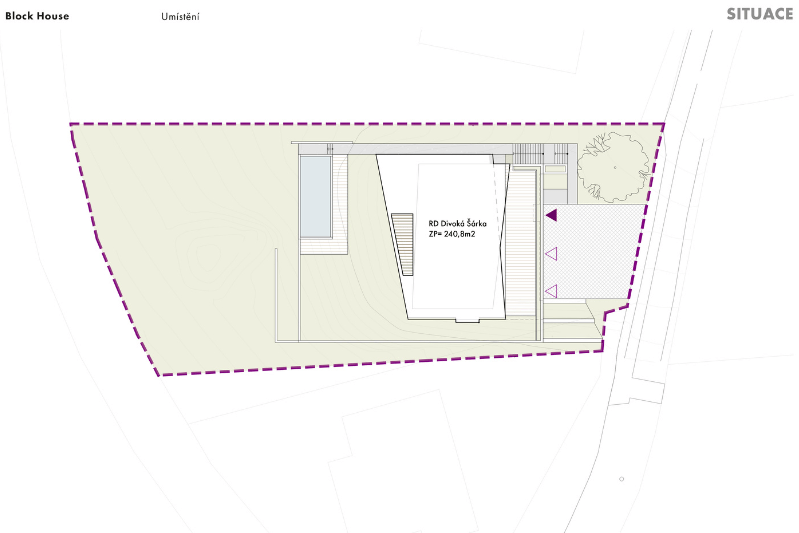 „Block House je projektem, kde se architektura setkává s topografií a kde každý prvek vyrůstá z logiky místa. Svažitost, výhledy a struktura zahrady nebyly překážkou, ale hlavním impulsem celého návrhu. Výsledkem je dům, který se v krajině neprosazuje, ale zapouští; který nabízí velkorysé bydlení, aniž by působil dominantně; a který svou kompozicí vytváří klidný, ucelený a důmyslně zónovaný domov v jedné z nejcennějších lokalit Prahy.“ ( Studio MA s.r.o.)