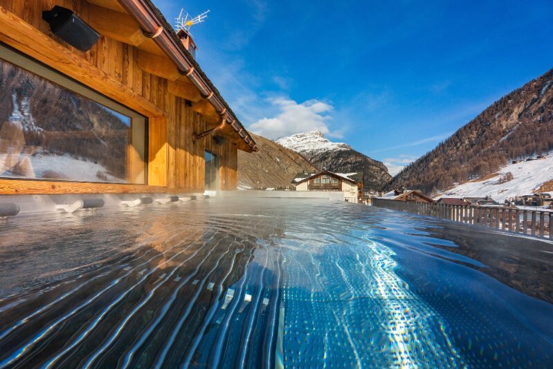 Nerezový bazén IMAGINOX je ve vnější části volně stojící a voda se tak zvolna převaluje přes nerezovou hranu bazénu. Vytváří tak dojem nekonečné hladiny – infinity edge a hosté mají při pohledu z vody pocit dokonalého propojení bazénu s okolní přírodou. Konstrukce bazénu z nerezové oceli zaručuje dlouhou životnost, odolnost vůči mrazu a chemii i snadnou údržbu. V horských oblastech, jako je Livigno, představuje nerez ideální volbu pro celoroční provoz.
